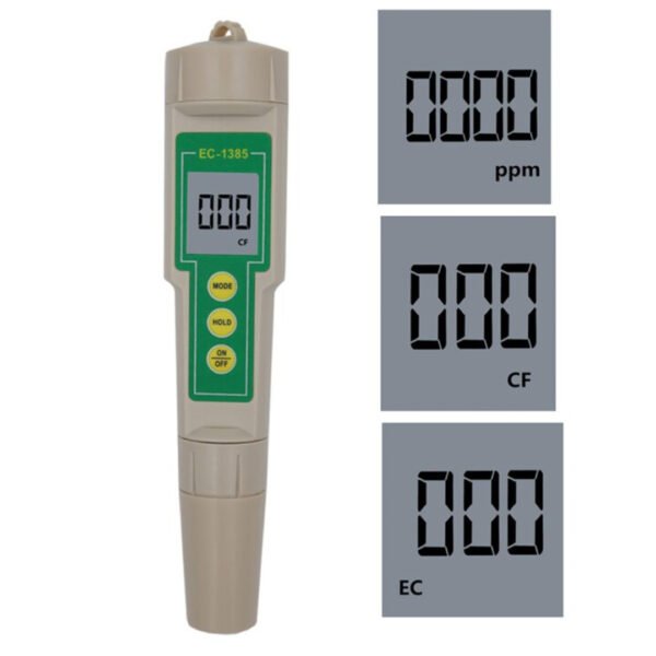 Función tres en uno, mide 3 parámetros incluyendo EC,CF, usando un electrodo TDS, tres.