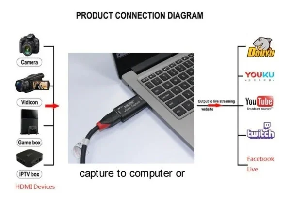Capturadora De Vídeo Hdmi Hd 1080p 4K Usb 3.0 Live Streaming