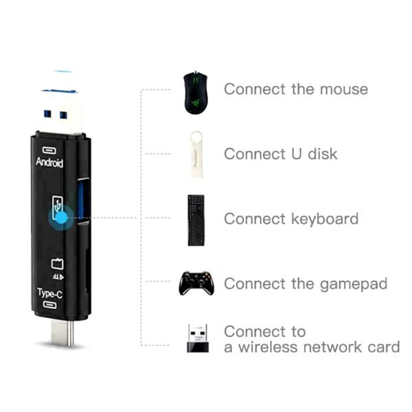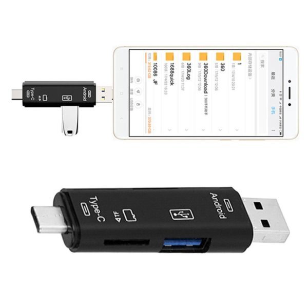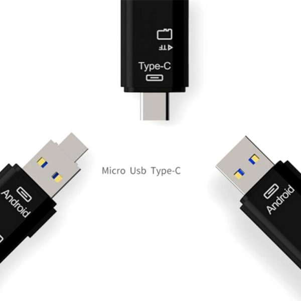 Cabezal macho USB2.0 + cabezal macho MICRO + cabezal macho tipo C, tarjeta de memoria TF de lectura de alta velocidad.