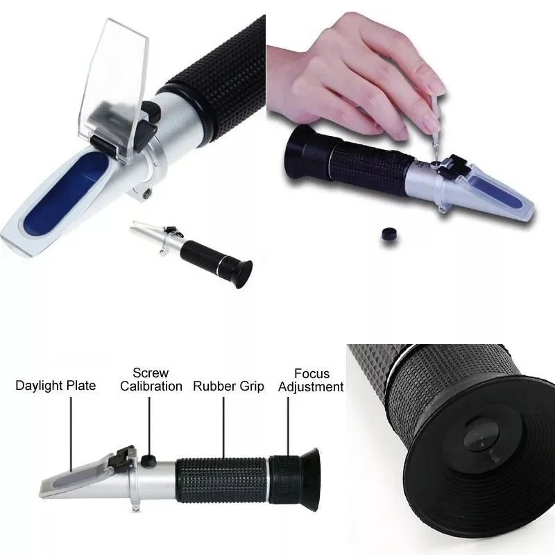 Este Refractometro De Liquidos es un modelo especialmente desarrollado para medir la concentración de brix y agua y el nivel de baume en la miel. Está COMPLETAMENTE EQUIPADO con ATC que se ajusta automáticamente para corregir las discrepancias de temperatura durante el uso. El Ãndice de refracción es muy dependiente de la temperatura, es importante usar un refractómetro con compensación automática de temperatura para obtener la medición más precisa en cualquier tipo de temperatura ambiental. Capaz de medir con alta precisión y proporciona resultados precisos, y está equipado con un gráfico de retÃcula vivo y nÃtido para una lectura fácil y cómoda. Utiliza luz ambiental solamente y no necesita baterÃas. Hecho por artesanos experimentados y es poco probable que se descomponga.
