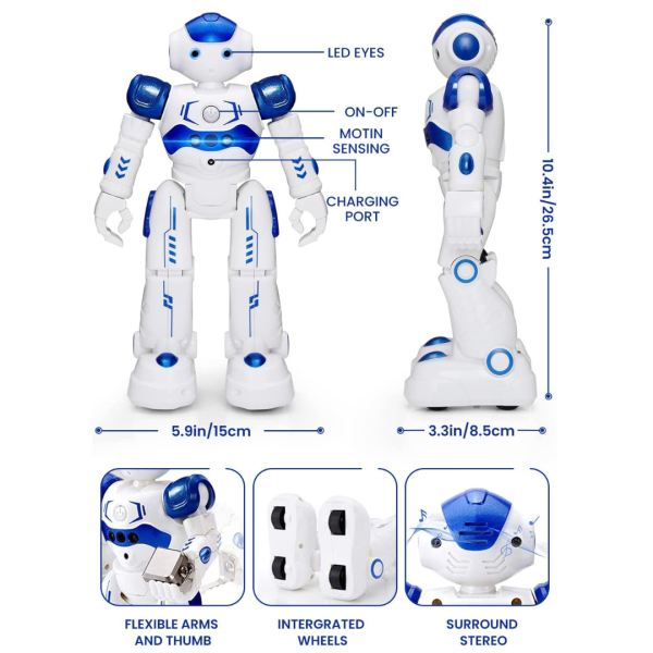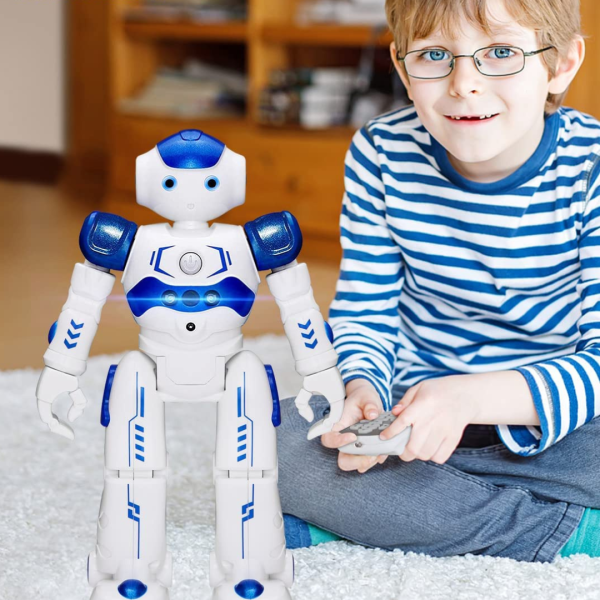 Material ecológico.El robot de juguete de control remoto está hecho de plástico ABS de alta calidad, respetuoso con el medio ambiente, no tóxico, seguro y resistente al desgaste, el robot está magníficamente elaborado con bordes redondeados que no lastimarán a su hijo.