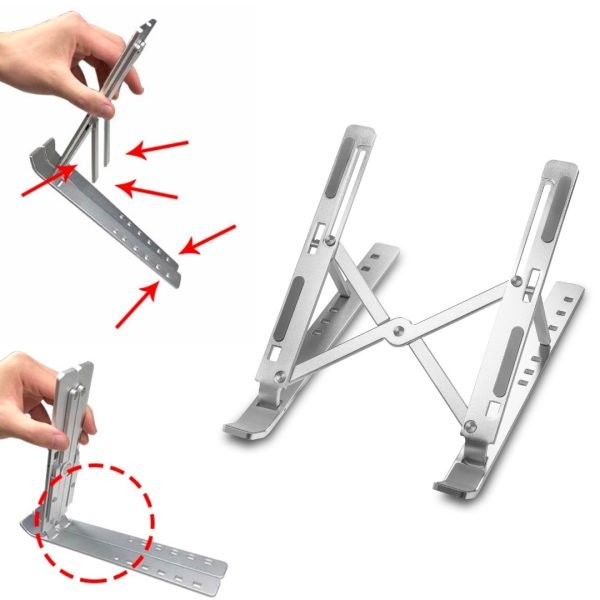 DISEÑO PLEGABLE: Plegable a tamaño compacto, pesa solo 8.36 oz. y tiene una bolsa de recolección. Fácil de poner en una bolsa de computadora. Este soporte para computadora portátil es ideal para viajeros de negocios y presentaciones corporativas.