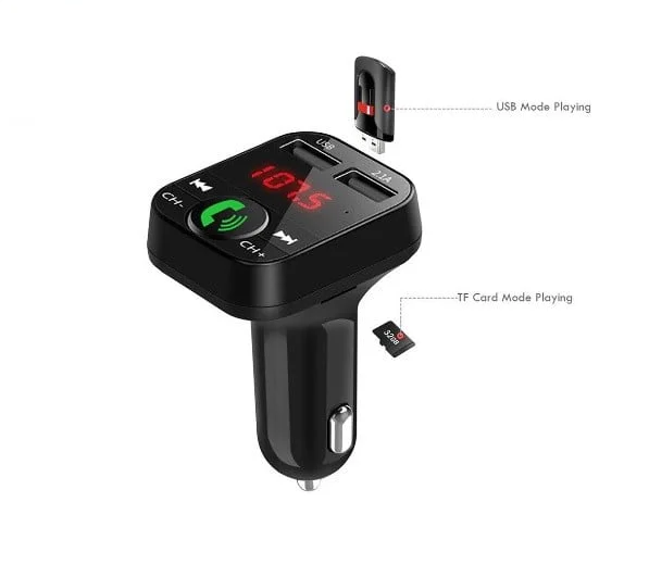 Este producto adopta la tecnologÃa de transmisión inalámbrica de frecuencia completa de FM y puede leer directamente los archivos de audio en el teléfono Bluetooth / TF tarjeta / U disco. Admite la reproducción de audio Bluetooth y llamadas manos libres Bluetooth. Apoyo a la función de aplicación inteligente, decodificación de audio de alta calidad sin pérdida; Función de carga de coche USB en un coche multifuncional MP3.